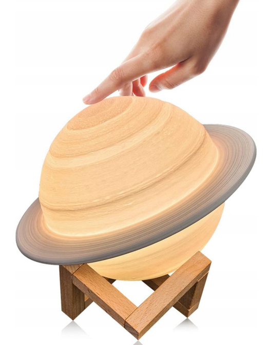 LEMPA „MĖNULIO ŠVIESA 3D SATURNAS“ – 12 CM SU MEDINIU STOVU