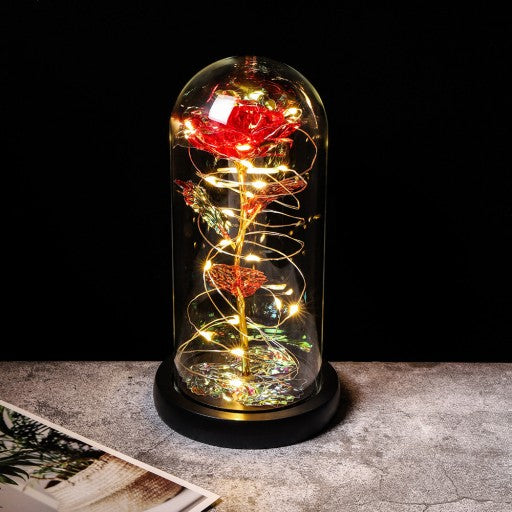 RAUDONA AMŽINA ROŽĖ STIKLE | LED