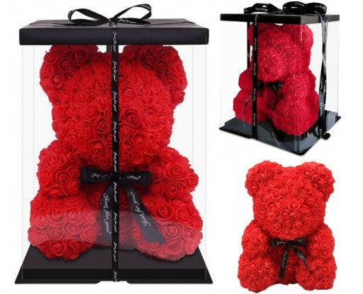 Puiki dovana mylimam žmogui, kuri išliks ilgus metus. Meškutis pagamintas rankomis iš kelių šimtų dirbtinių rožių, kurios nenublunka ir nenuvysta, todėl tai amžinas prisiminimas.