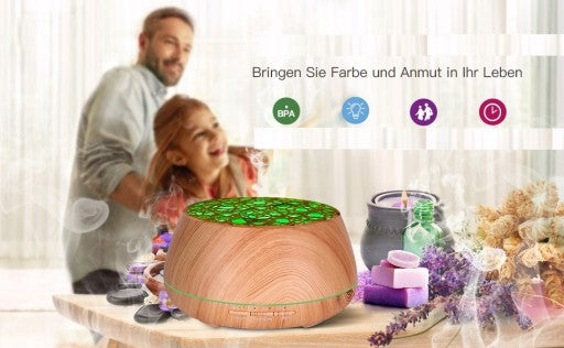 Šis eterinių aliejų difuzorius ne tik skleidžia malonius aromatus, bet ir veikia kaip drėkintuvas. Jis pagerina namų atmosferą, neutralizuoja nemalonius kvapus, apsaugo nuo sauso oro ir padeda sukurti jaukią aplinką.